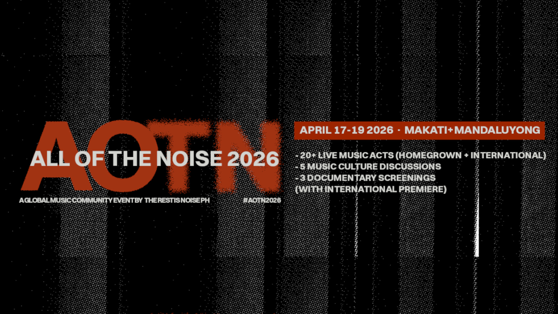 All Of The Noise 2026 is also supported by its international and local music partners ONErpm, Symphonic Distribution, Astbury, 123 Block, Sari-Sari, Nyou Consultancy, and Guevarra’s.